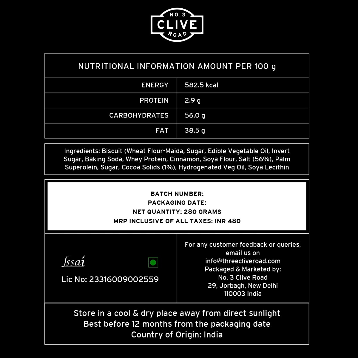 Ingredients: Biscuits, whey protein, cinnamon, soya flour, salt, palm super olein, cocoa solids, hydrogenated vegetable oil and soybean liquid.
